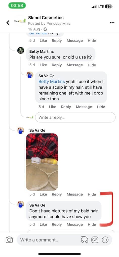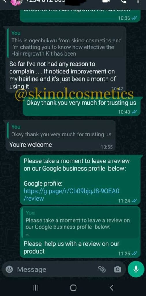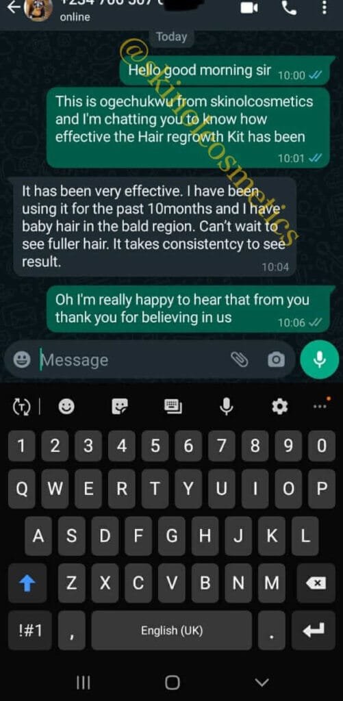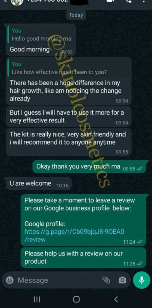Before I started using this product, I already gave up on using topical hair growth products. I was almost depressed coz I wasn’t seeing any result. Then boom!!!! I came across this product online but shrugged it off coz to me, there wasn’t going to be any result anyway. I finally decided to get it and I must say my edges are covered with baby hair.tho it is not yet think but it’s superb I must say. I have used it for six months now. I will recommend this product. It takes lots of patience to see result but it’s worth the wait🤗🤗🤗🤗🤗🤗