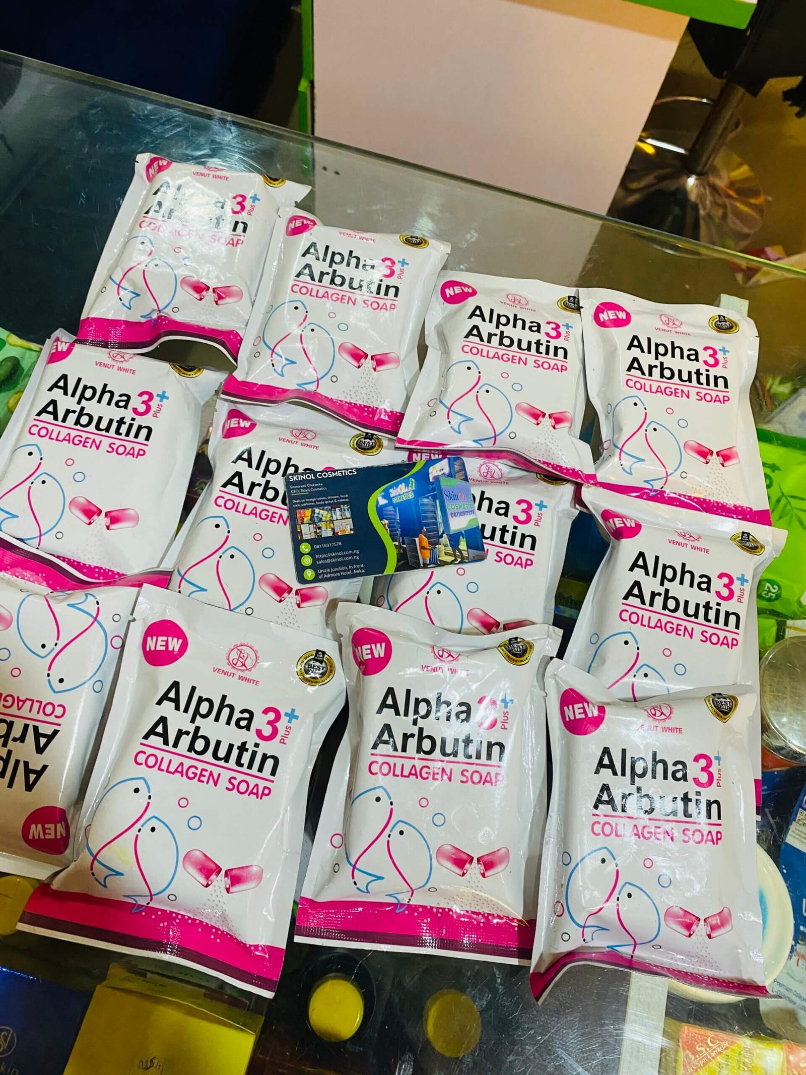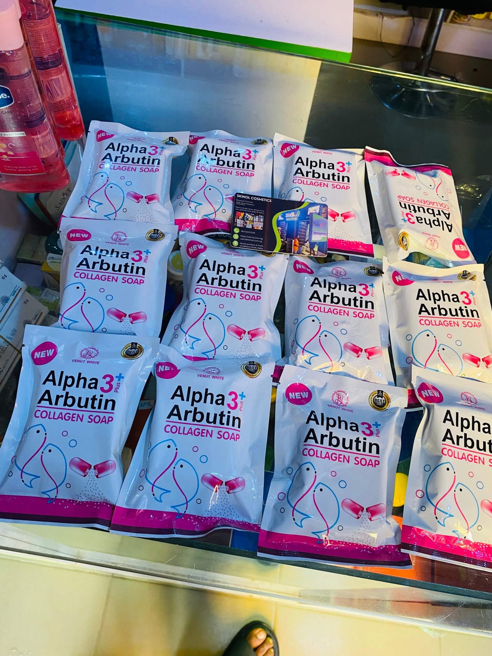 Ingredients: Alpha Arbutin, Collagen, Glycerin, Coconut Oil. For external use only. Store in a cool, dry place. Regular Price: 3800 NGN.